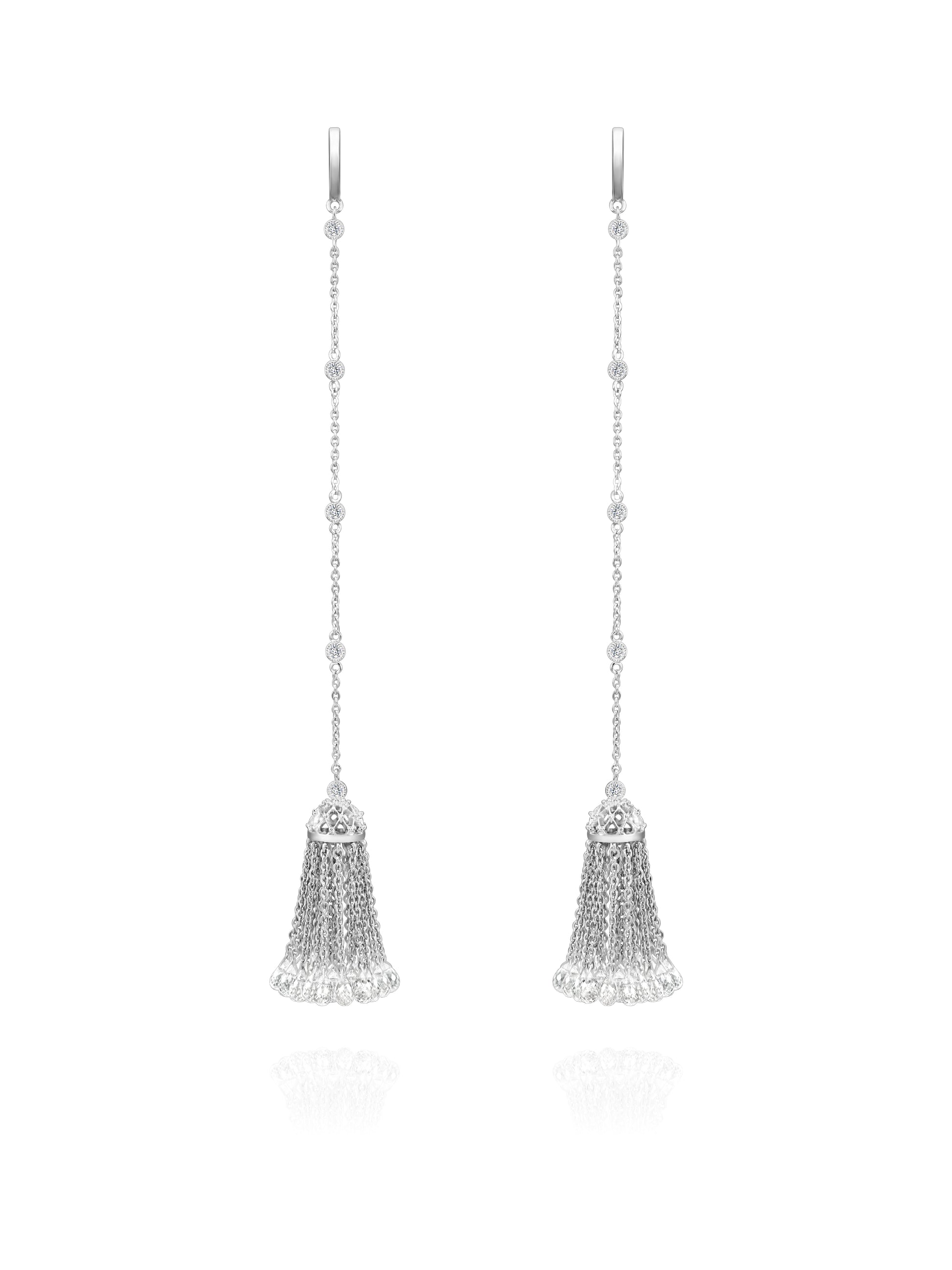Rafinament și mișcare fluidă într-un design atemporal. Cerceii Crystal Tassel sunt realizați din argint 925 și împodobiți cu pietre fine de zirconiu, care captează lumina la fiecare pas. Lanțurile subțiri se prelungesc grațios până la 12 cm, creând un efect de eleganță ușoară și sofisticată.