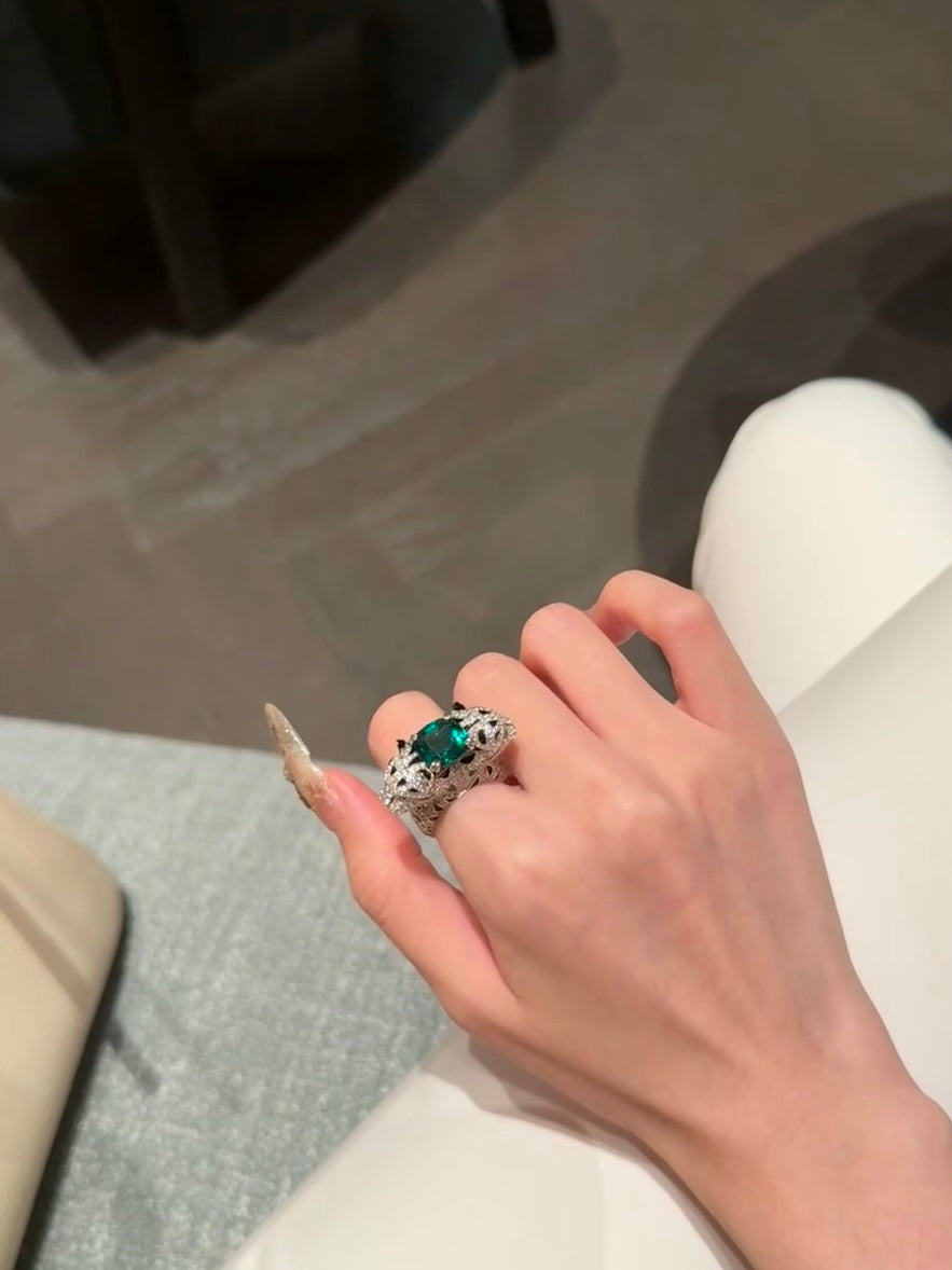 „Emerald Panthera Royale” este o piesă de bijuterie remarcabilă, creată pentru femeia care își poartă forța interioară cu eleganță și siguranță. Inspirat de misterul felinelor sălbatice, acest inel combină designul artistic cu luxul modern, fiind conceput ca o adevărată mini-sculptură purtabilă.