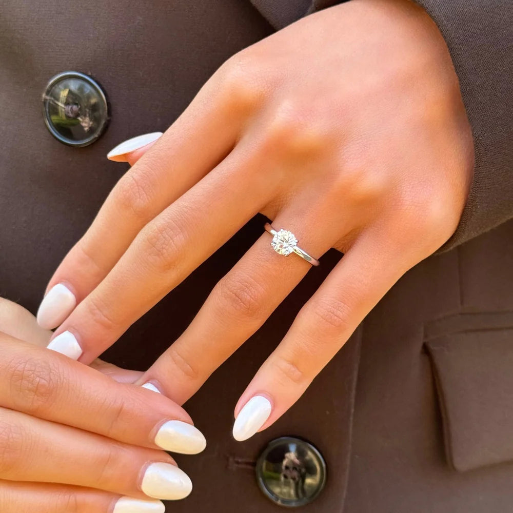 Îți poți completa look-ul de zi cu zi cu inelul clasic Oana din argint 925. Are un design elegant, cu o piatră rotundă de zirconiu cubic de 1ct (6,5 mm), care strălucește frumos datorită calității sale superioare (grad 5A). Banda este fină și lucioasă, iar montura cu patru gheruțe oferă un aspect clasic și rafinat. Perfect pentru logodne, călătorii sau pur și simplu pentru un plus de eleganță zilnică.